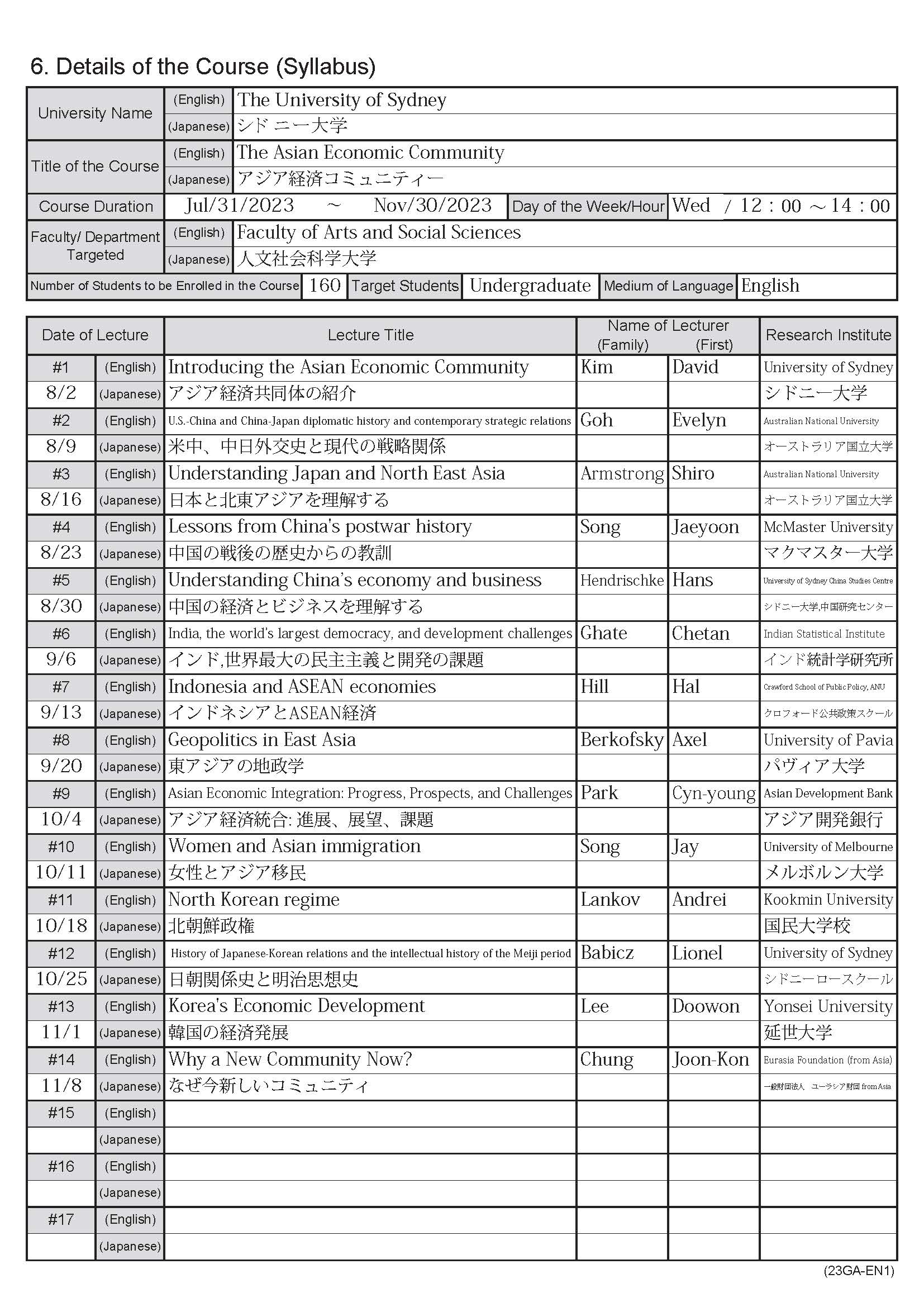 (奨学生表彰15名)2年目 2023年8月~2023年11月 アジア経済共同体 - 南オーストラリア大学(アデレード)